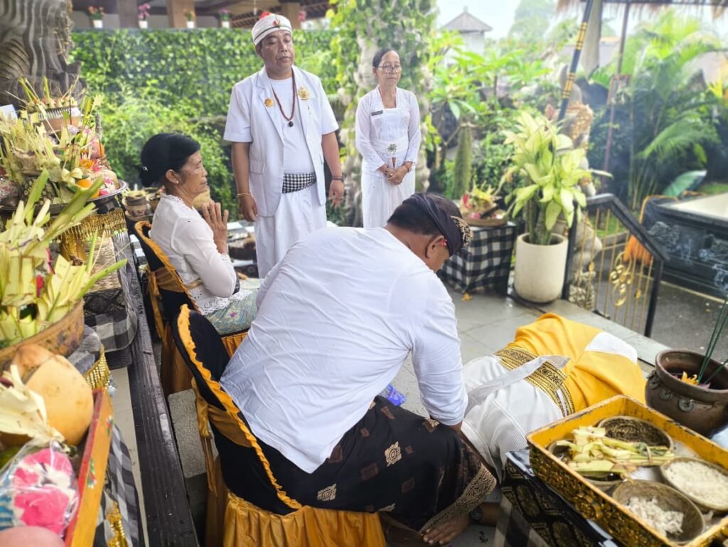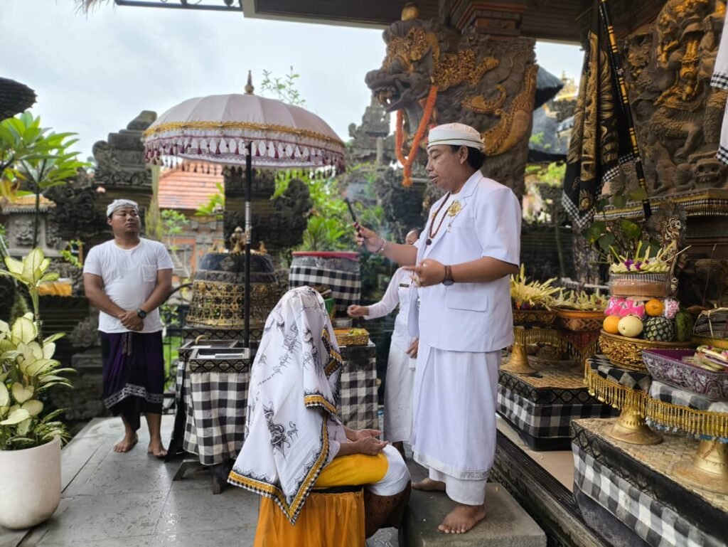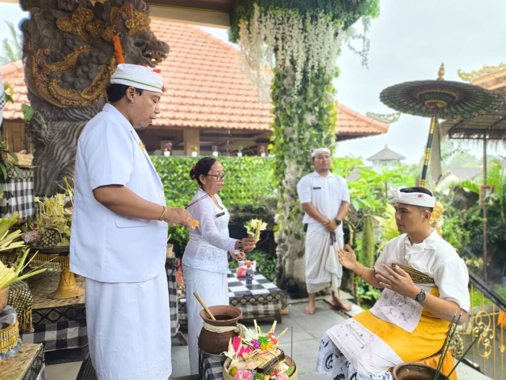LOKASI UPACARA : PURI YADNYA – Jln. Raya Nyuh Kuning – Desa mas – Kec. Ubud – Kab. Gianyar (sebelah Timur Setra Nyuh Kuning) ada patung Rsi/Pinandita ke Utara, LIHAT PAPAN NAMA